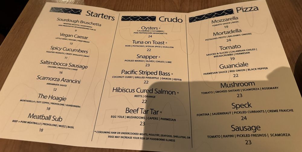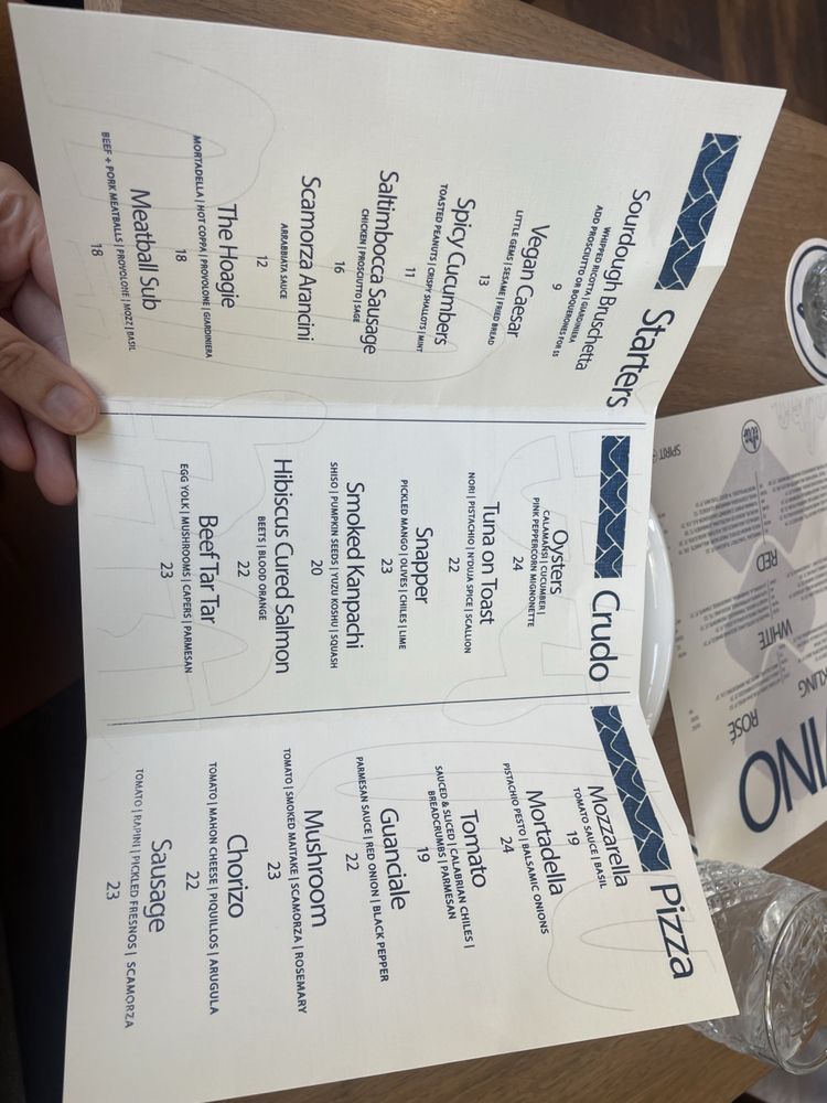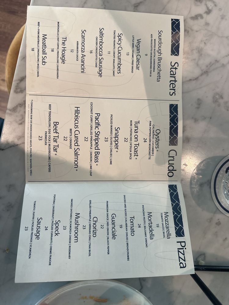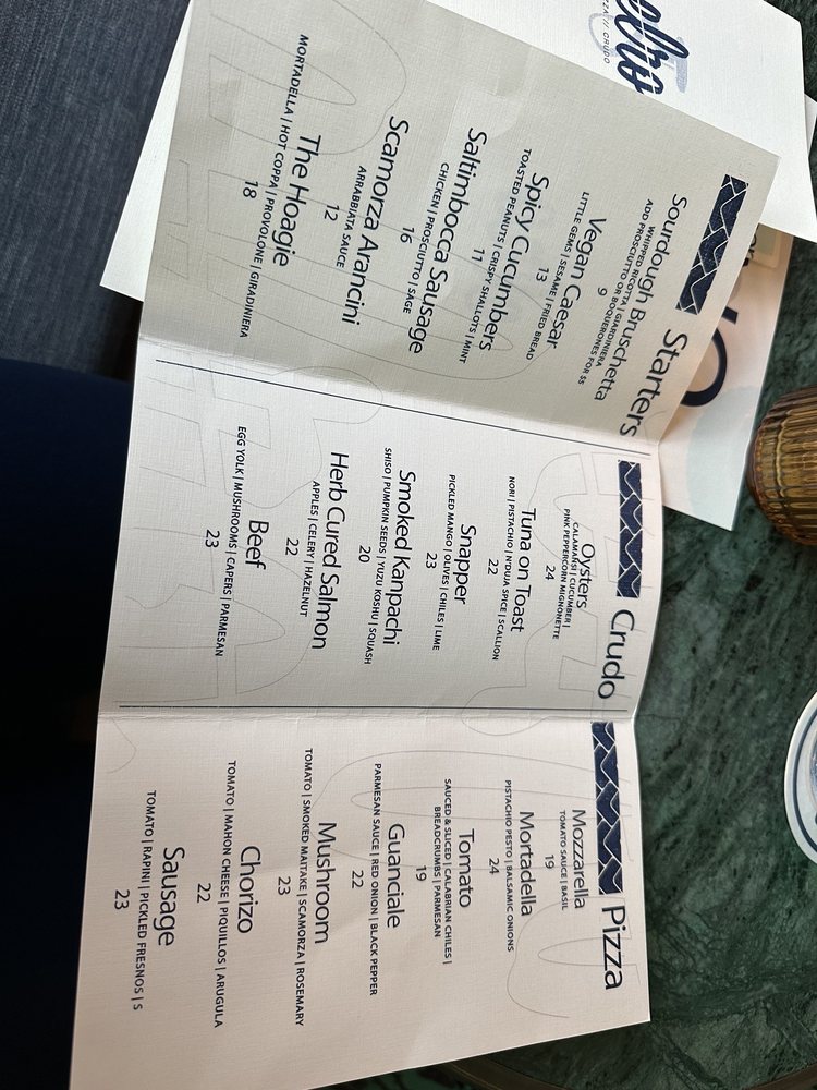 Elro Pizza + Crudo in Houston's Montrose neighborhood offers a unique combination of wood-fired pizzas and fresh crudo dishes. The cozy, homey interior and laid-back atmosphere make it a perfect spot for a casual dinner or a chill date night. The menu, though small, is thoughtfully curated, with standout dishes like the Burrata special, Tuna on Toast, and Snapper Crudo. The pizzas have a perfectly crisp, charred crust and flavorful toppings, with the Mortadella pizza being a favorite among customers. The vegan options, like the Vegan Caesar Salad and Spicy Cucumbers, are also delicious. The service is friendly and accommodating, creating a welcoming experience for all diners. Overall, Elro Pizza + Crudo is a hidden gem worth visiting for its delicious food, relaxed atmosphere, and great vibes.
